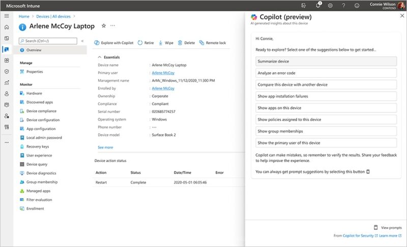 Les utilisateurs de la solution de gestion des appareils Microsoft Intune vont pouvoir s'appuyer sur l'intelligence artificielle grâce au service "Copilot in Intune", disponible en preview publique depuis mi-mars 2024. À quoi cela va-t-il servir ? Faisons le point !