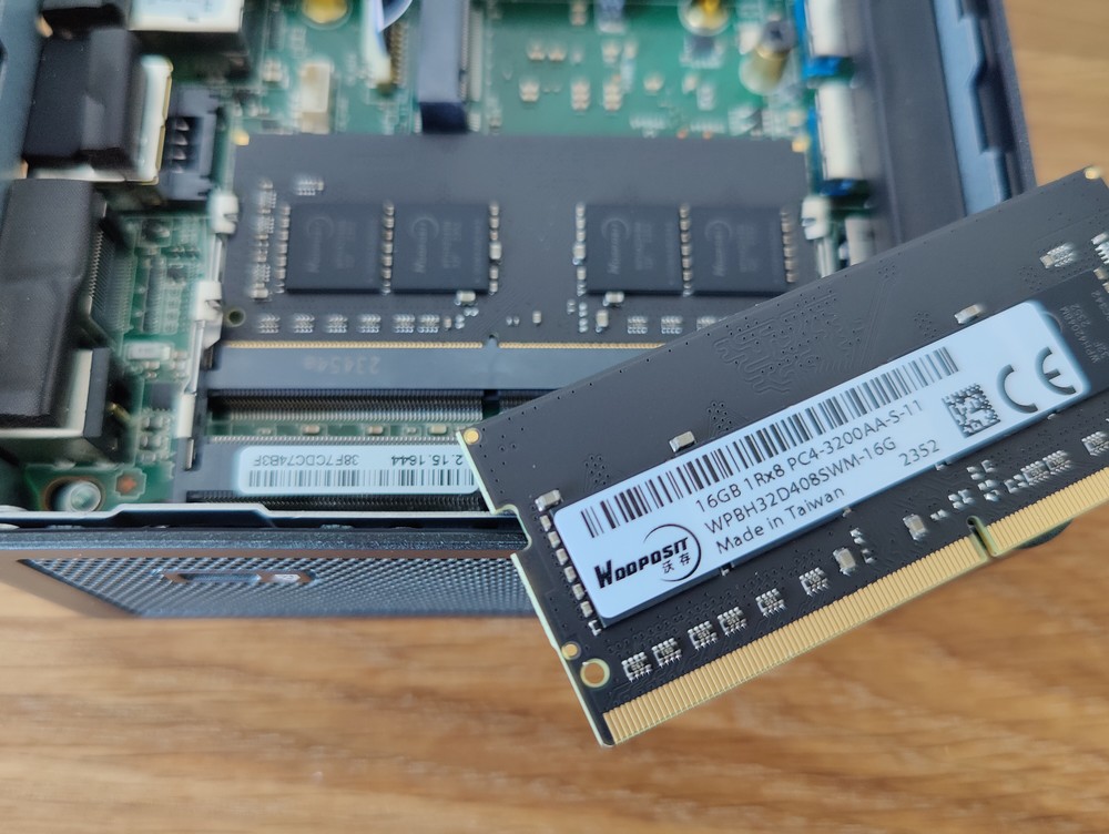 Le mini-PC est livré avec 16 Go de RAM en DDR4, mais une mise à niveau est possible. Le processeur i5 de ce modèle supporte 64 Go de RAM, ce qui signifie que nous pouvons remplacer les 2 barrettes de 8 Go par 2 x 32 Go. De quoi faire une belle évolution si vous souhaitez utiliser ce PC pour de la virtualisation.