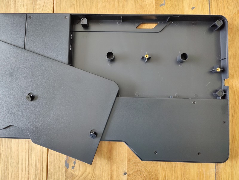 Le plateau du Couchmaster inspire confiance et la qualité de fabrication est très bonne. Le design est tout de même travaillé, et chaque zone où vous allez poser votre poignée, le plastique laisse sa place à une texture plus agréable. Le tapis de souris gaming fournit avec le Couchmaster pourra être collé sur le plateau, soit à droite, soit à gauche, grâce au scotch double-face intégré au package. Sachez que ce plateau n'a pas d'éclairage ou d'éléments lumineux, ce qui sera peut-être perçu comme un point négatif pour certains.