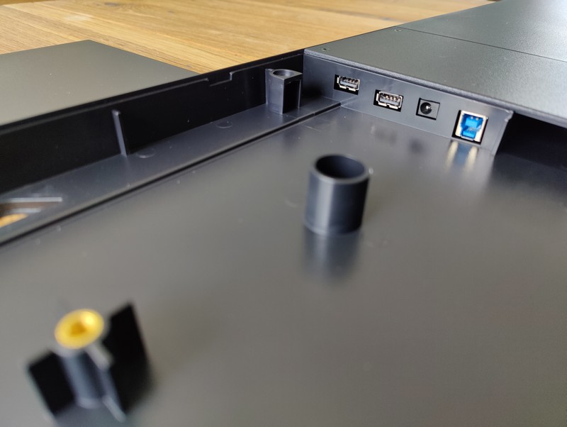 Au centre, sur la partie supérieur du plateau, nous avons accès à deux ports USB-A pour connecter ce que l'on souhaite. Bien entendu, ces ports USB sont reliés à votre PC par l'intermédiaire du Hub USB intégré au Couchmaster.