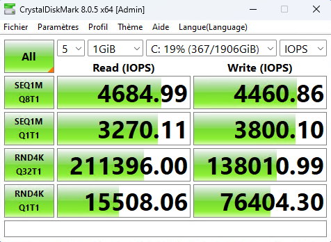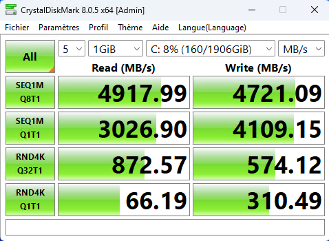 Commençons par mesurer les performances du disque SSD NVMe intégré à l'ordinateur.