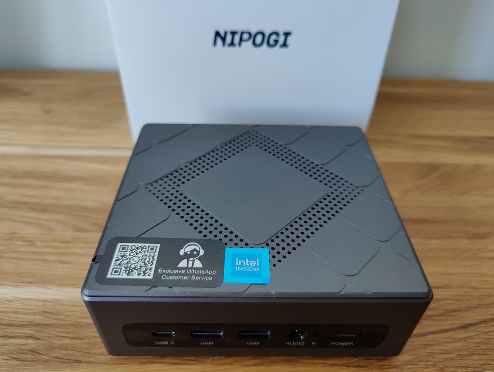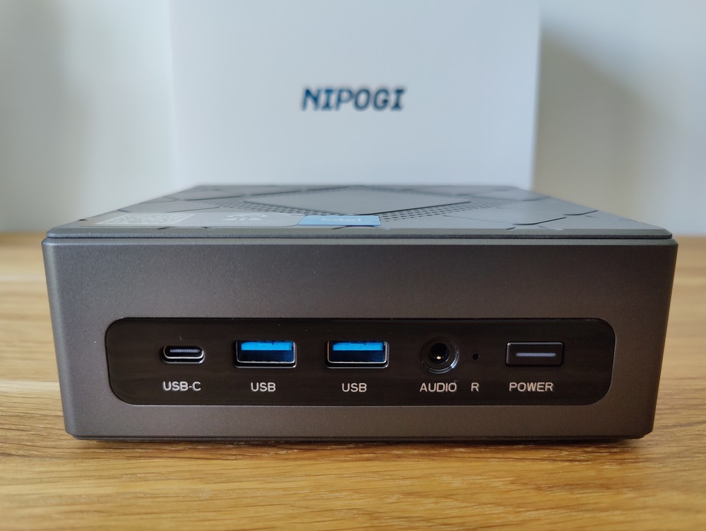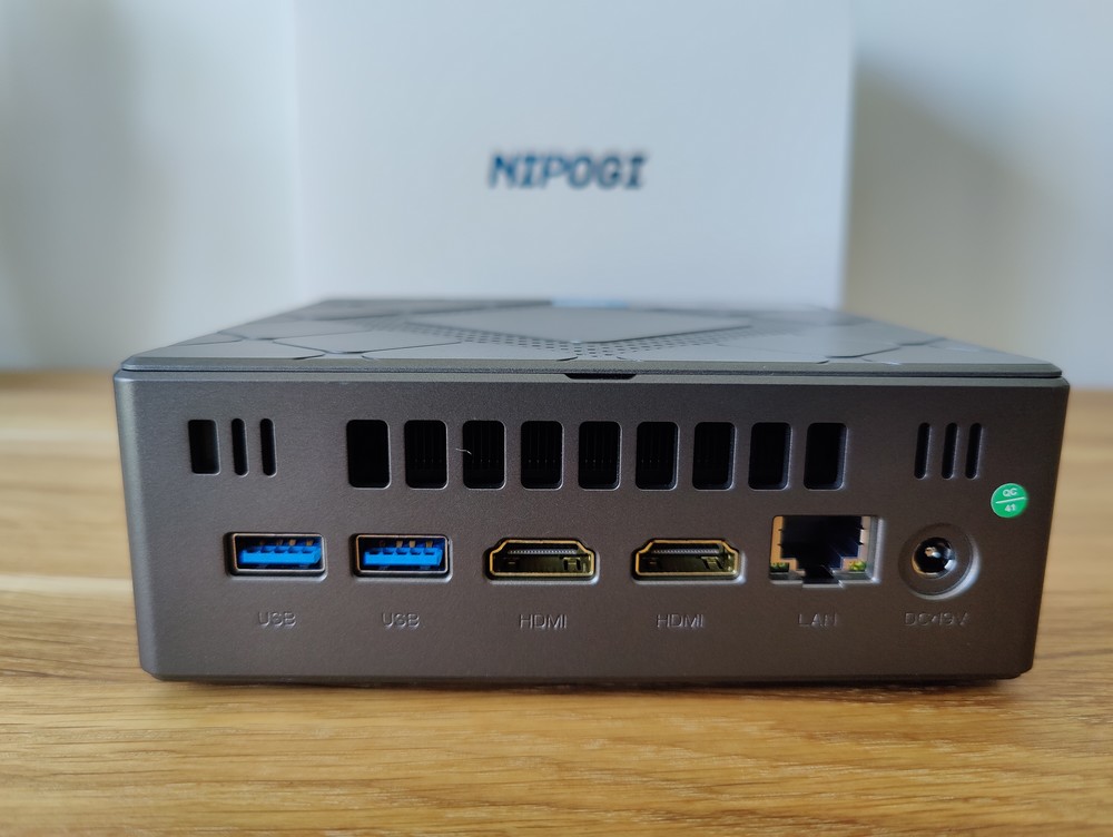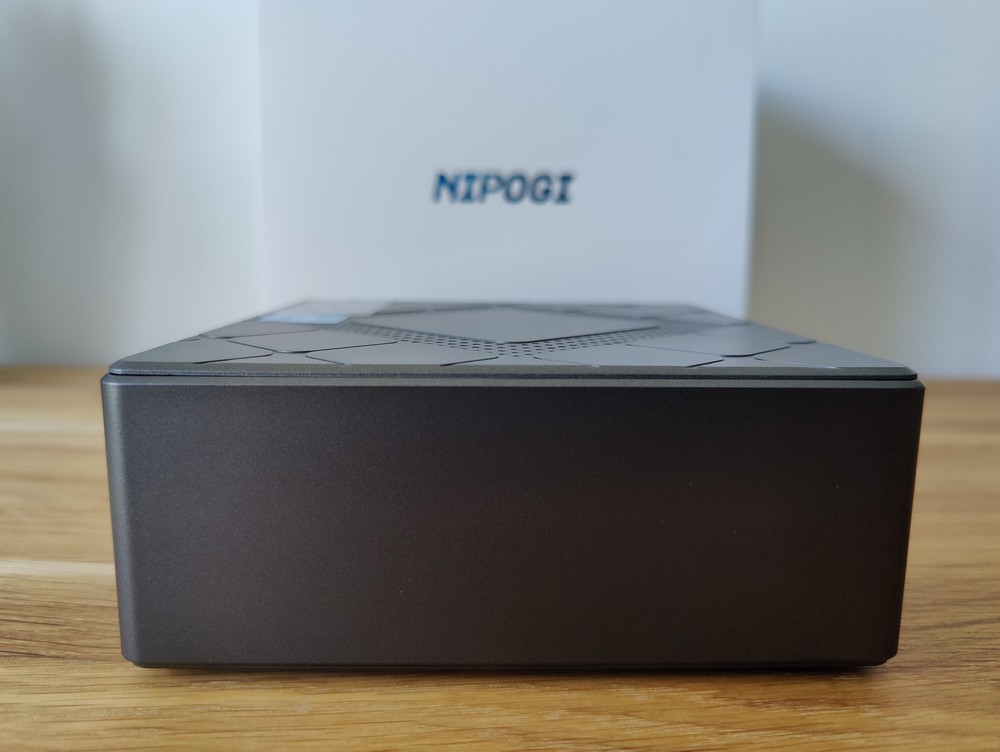NiPoGi cherche toujours à apporter un peu d'originalité au design de ses boitiers, et c'est le cas avec le CK10. J'ai apprécié la présence d'une connectique riche, avec notamment de nombreux ports USB dont 3 en façade (2 USB-A + 1 USB-C). Néanmoins, le boitier de ce mini PC est légèrement plus imposant que d'autres modèles (même s'il reste compact : 13,8 x 12,6 x 5 cm) et il y a également l'absence d'un lecteur de carte SD. C'est à préciser, car pour certains usages, cela peut avoir son importance. Par ailleurs, le port VGA présent sur le côté du boitier peut surprendre, mais c'est malgré tout un atout pour ce modèle. Ce petit détail plaira à ceux qui ont besoin d'une machine récente, compacte et équipée du VGA.
